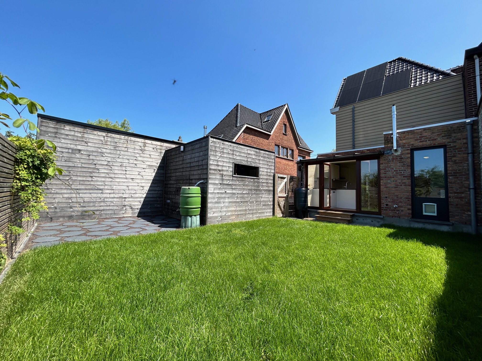 Gezellige tuin met aangelegd terras. Praktische grote berging, oprit voor 2 wagens.